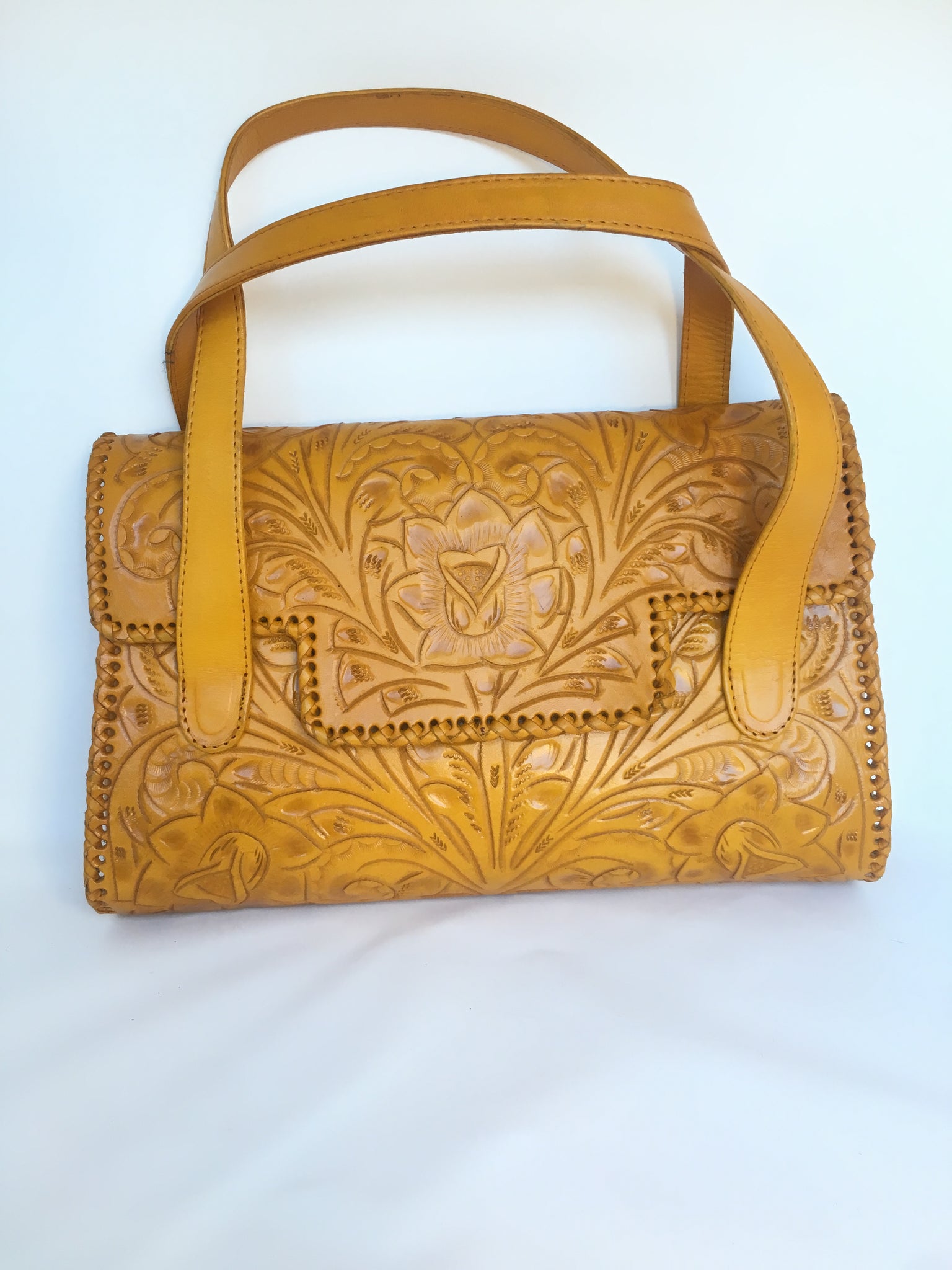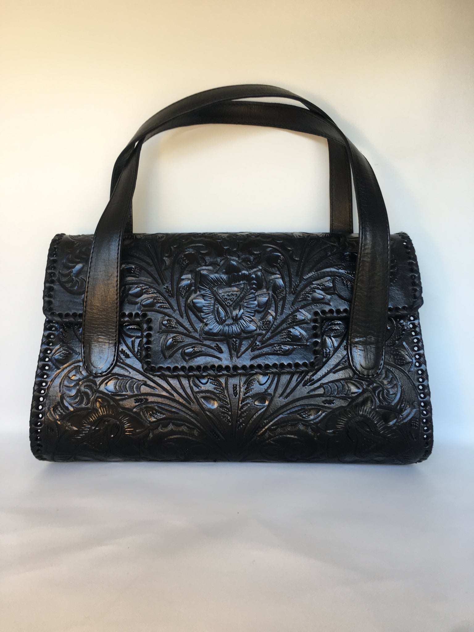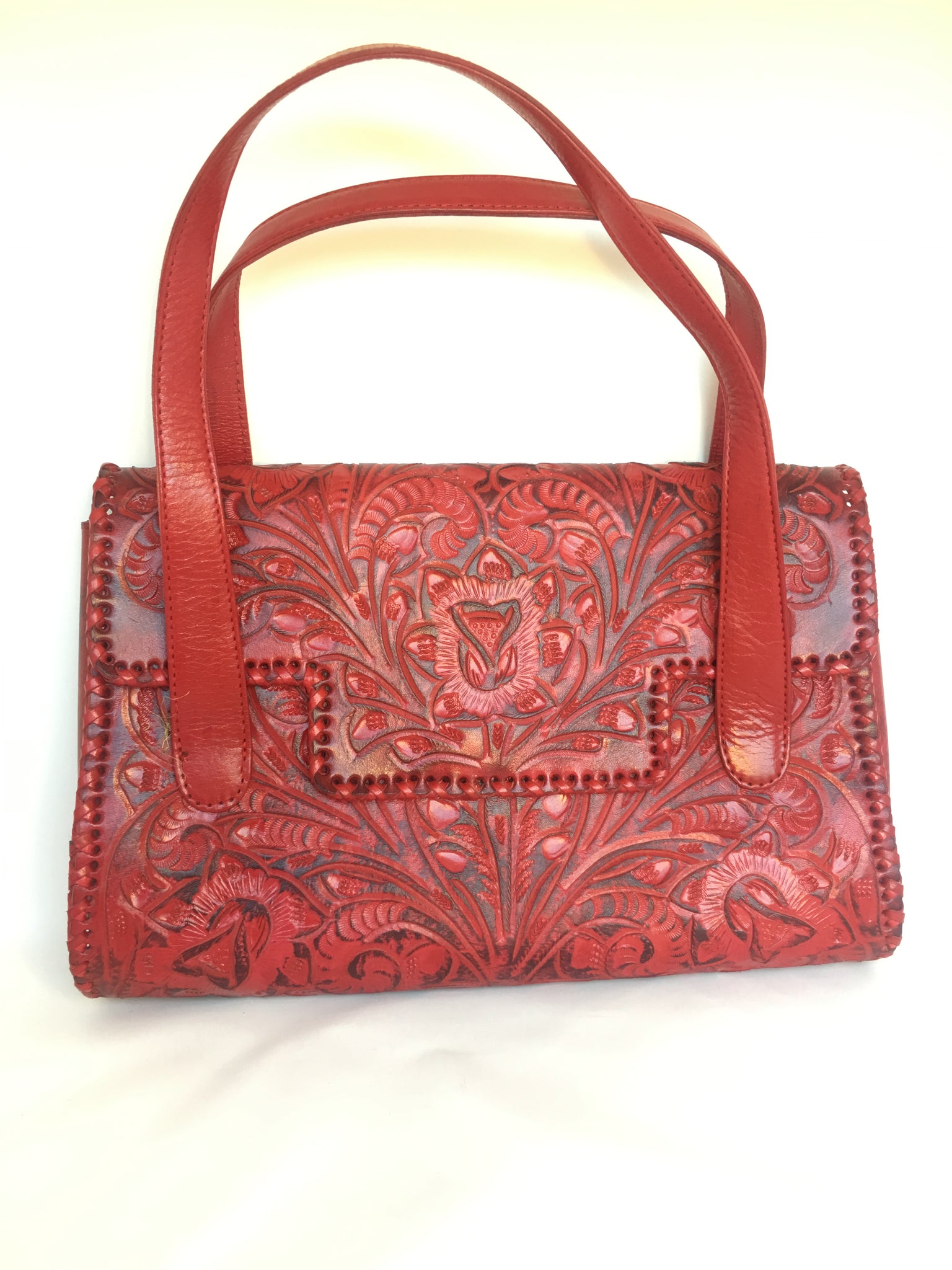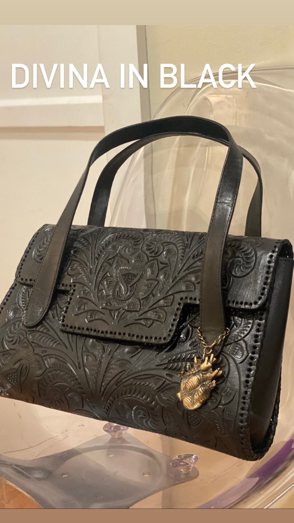 Divina is a show stopper! Hand tooled, hand braided, lined with suede. Double shoulder strap with magnetic secure clasp flap.